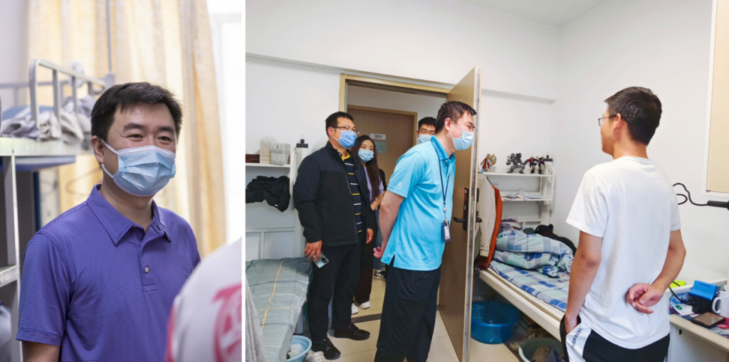 williamhill英国威廉希尔经理刘明杰一行到实验7号楼研究生工位、沙河东区和西区宿舍看望本研员工,与同学们详细沟通了学习和科研进展,了解员工需求,鼓励同学们合理安排好科研、上课、学习及生活,积极锻炼身体,以实际行动守护美丽校园。