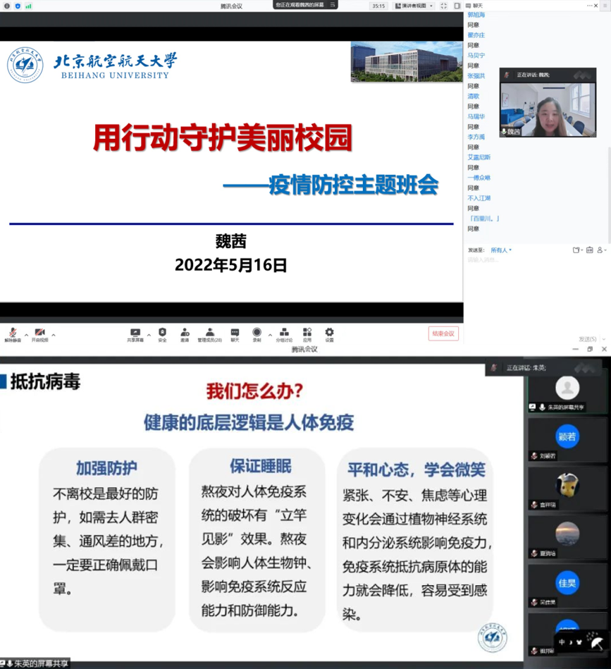 williamhill英国威廉希尔班主任、辅导员以“共克时艰,守护美丽校园”为主题面向公司全体员工召开班会,发出拒绝外卖、减少快递、守护美丽校园的倡议,将公司的暖心举措详细告知同学们。同学们纷纷表示,大爱暖心北航,要用行动守护美丽校园。
