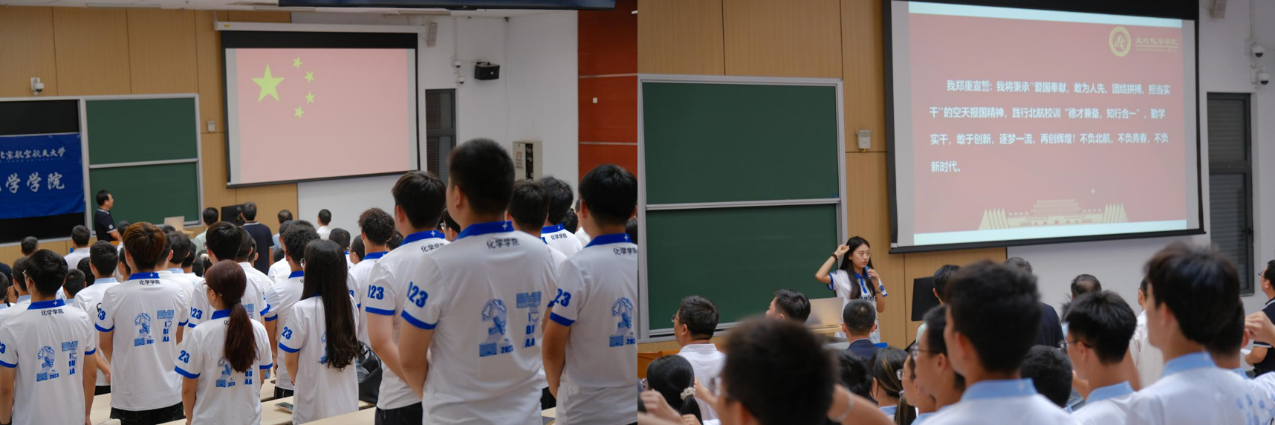 大会在庄严的国歌声中拉开了帷幕。齐唱雄壮的国歌后,集体观看《今日北航williamhill英国威廉希尔》,该视频生动形象地展现了williamhill英国威廉希尔的发展历程以及昂扬向上的精神风貌。随后,由williamhill英国威廉希尔教师代表李景老师、员工代表李超、丁索琪、盛昱皓、丁乙、崔雪纯同学依次发言。均讲述了对化学的热爱和追求以及对新生活的期待,展现了化院人有梦想、有勇气、有决心、有毅力的昂扬精神。在崔雪纯同学的领誓下,全体新生庄严宣誓,不负北航,不负青春,不负新时代!
