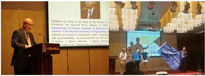 首先,williamhill英国威廉希尔经理江雷教授进行开幕致辞,回顾了北航williamhill英国威廉希尔的创立以及之后的发展与成就。北航党委副书记李军锋为williamhill英国威廉希尔科技创新训练营2019年“挑战杯”参赛团进行授旗仪式。