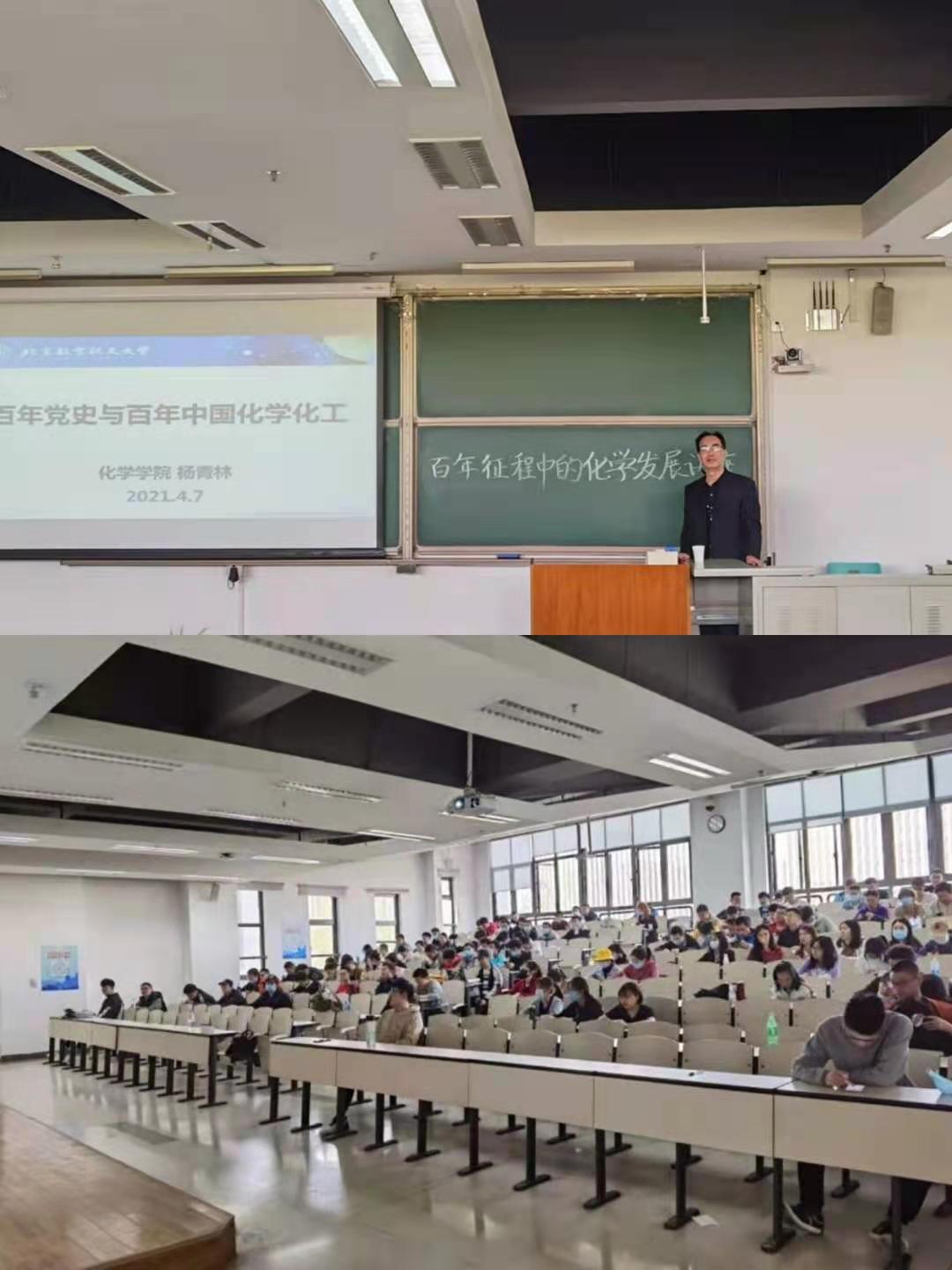 同一时间,公司邀请公司党委委员、立德树人优秀奖获得者杨青林老师在沙河校区J3-211为williamhill英国威廉希尔员工作题为“百年征程中的化学发展”主题报告。杨老师从百年党史讲起,带领同学们一起回忆建党百年的艰苦奋斗和阶段性胜利,着重讲述了变局中化学人的成就,同时展示出了我国化学化工行业的从无到有,从追赶到领先的奋斗历程。