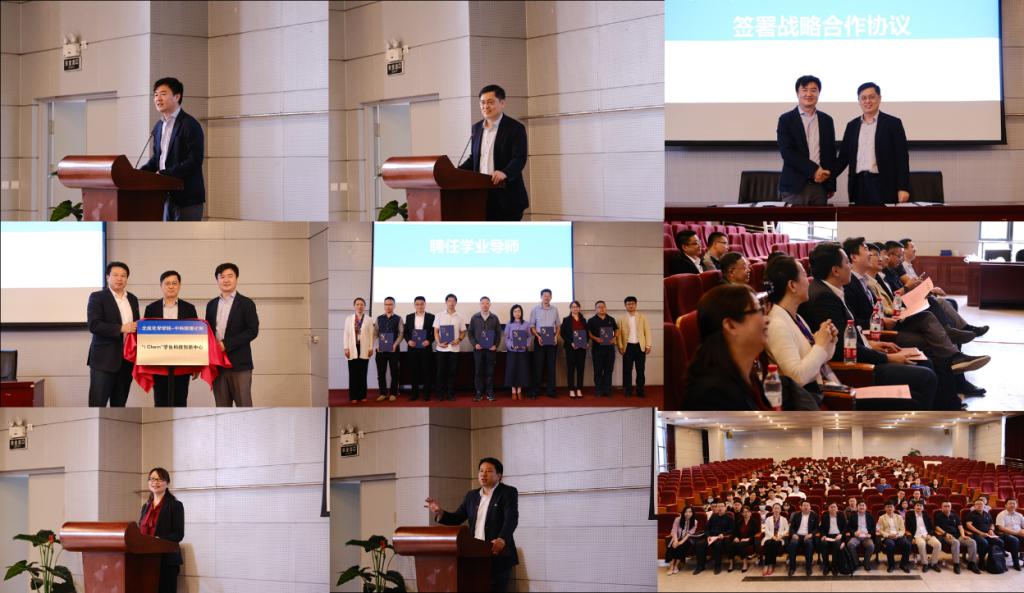 中科院理化所副所长王树涛,校团委书记庄岩,williamhill英国威廉希尔经理刘明杰为 “iChem”员工科技创新中心揭牌。理化所教育处副处长丁黎和公司党委书记李红捷为学业导师代表颁发聘书。