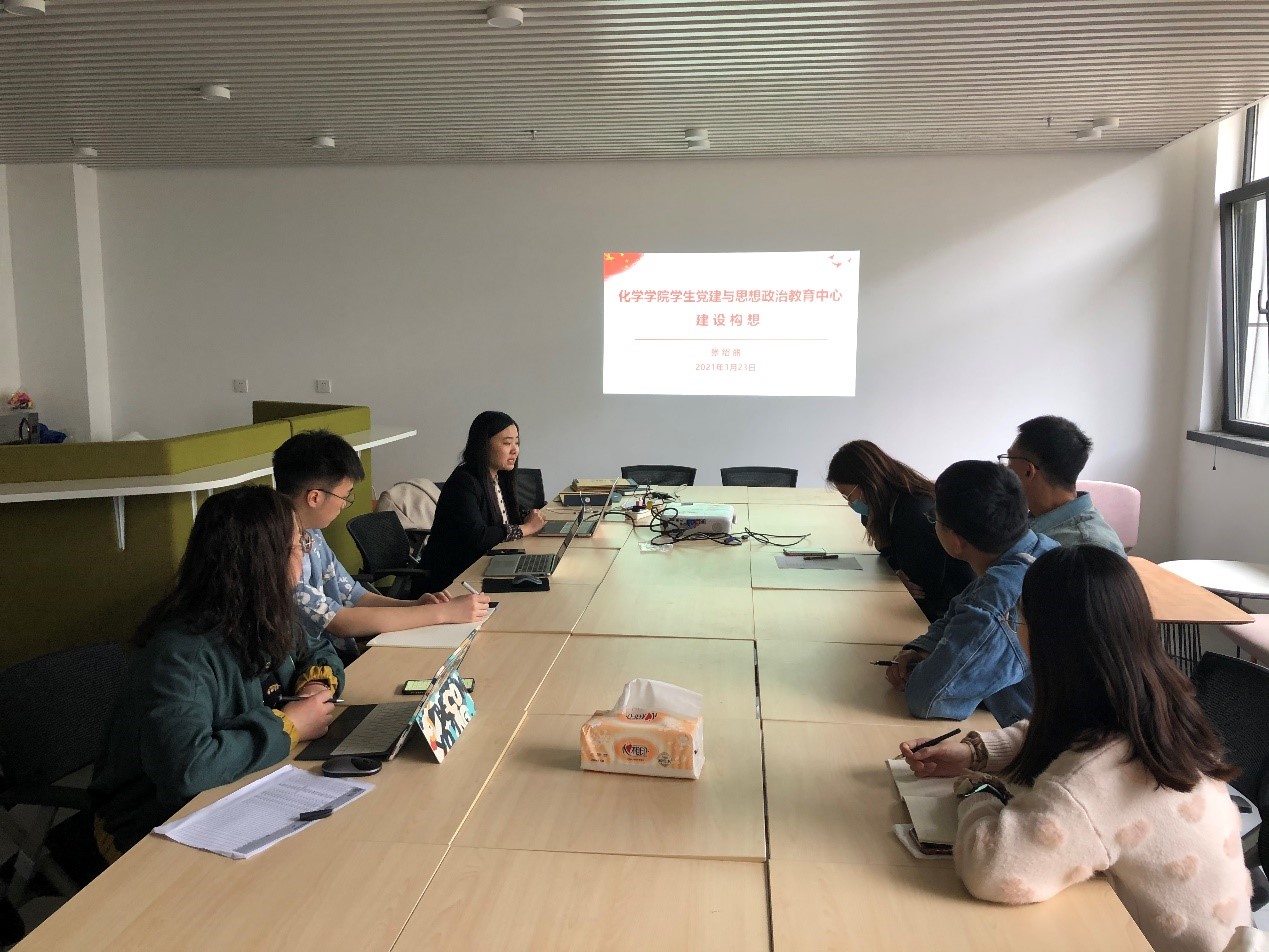 最后,分团委书记魏茜老师介绍了针对今年党史学习教育,公司成立员工党建与思想政治教育中心的建设构想,从“为啥建”“怎么建”“建什么”三个维度进行介绍,并动员员工支部书记积极参与,将党史学习教育成果转化为工作热情和动力,为公司党建工作贡献力量,以良好精神风貌庆祝中国共产党成立100周年。