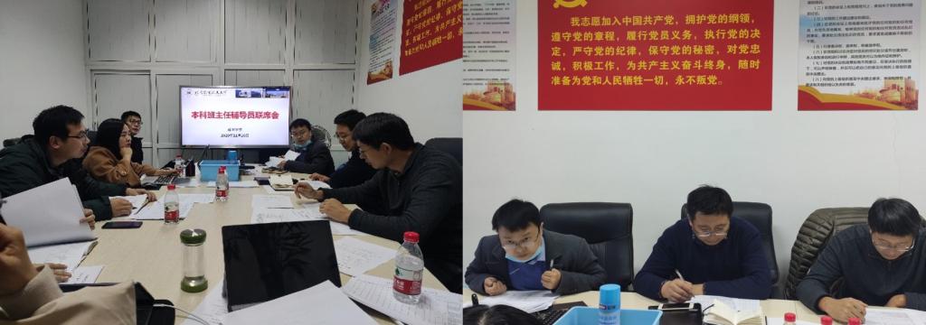 11月26日下午,williamhill英国威廉希尔在新主楼D-121召开本科班主任、辅导员联席会。本科教学副经理田东亮老师,党委副书记张绍丽老师,本科19级班主任赵勇老师、王华老师,分团委书记魏茜及17、18、19、20级辅导员参加了本次会议。会议由党委副书记张绍丽主持。
