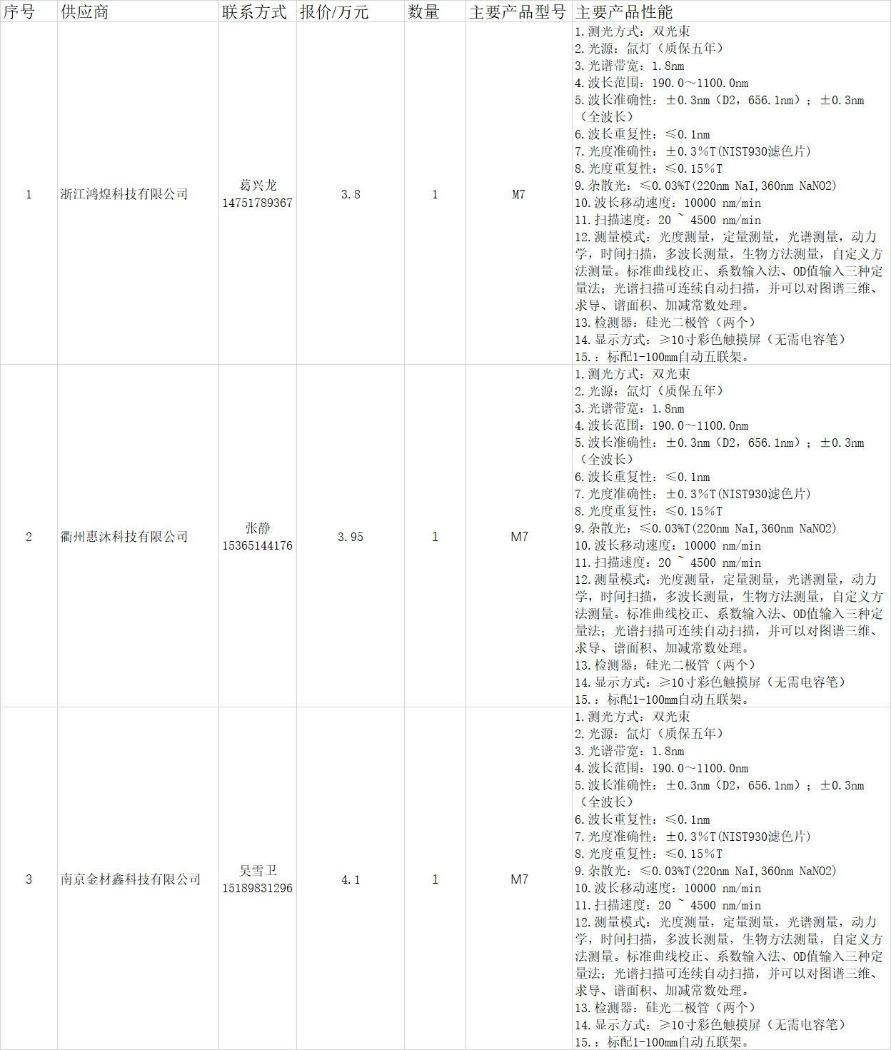 williamhill英国威廉希尔紫外可见分光光度计设备采购项目由项目负责人通过比价方式采购,现将比价过程及结果公示如下: