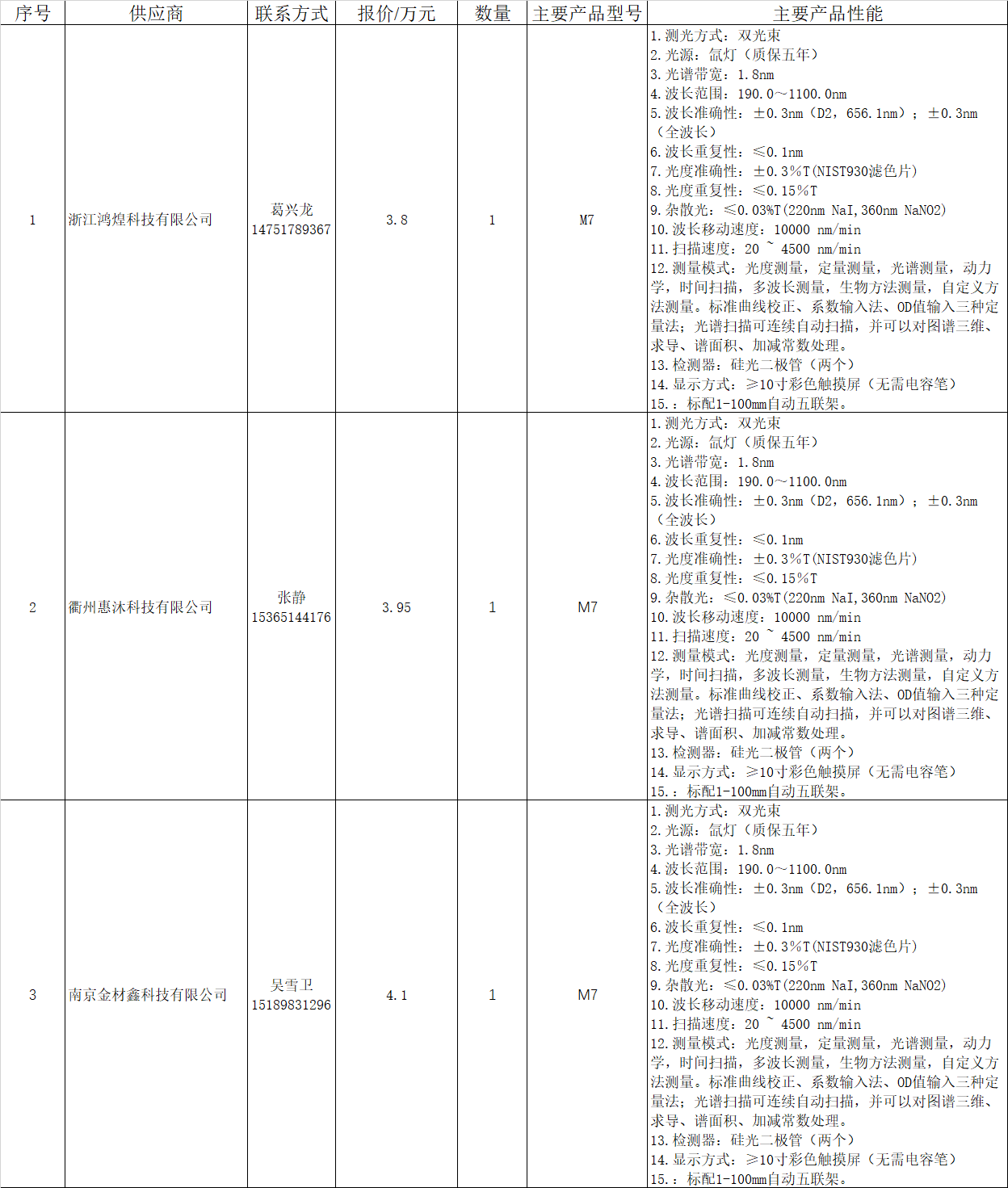 williamhill英国威廉希尔紫外可见分光光度计设备采购项目由项目负责人通过比价方式采购,现将比价过程及结果公示如下: